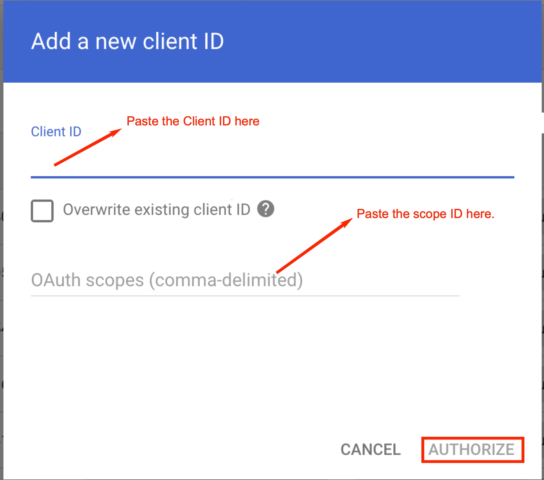 The access permission page is displayed as follows. Copy the client ID and Scopes ID generated.