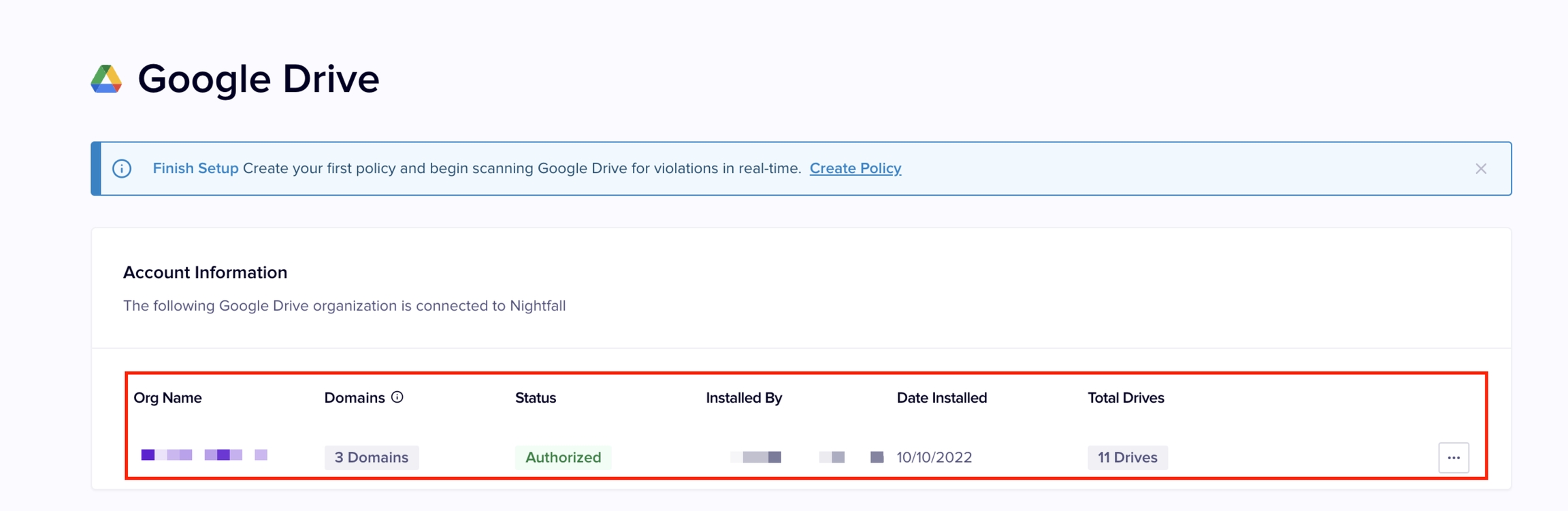 Once the installation is completed, you can view the details of your Google Drive in the Nightfall app.