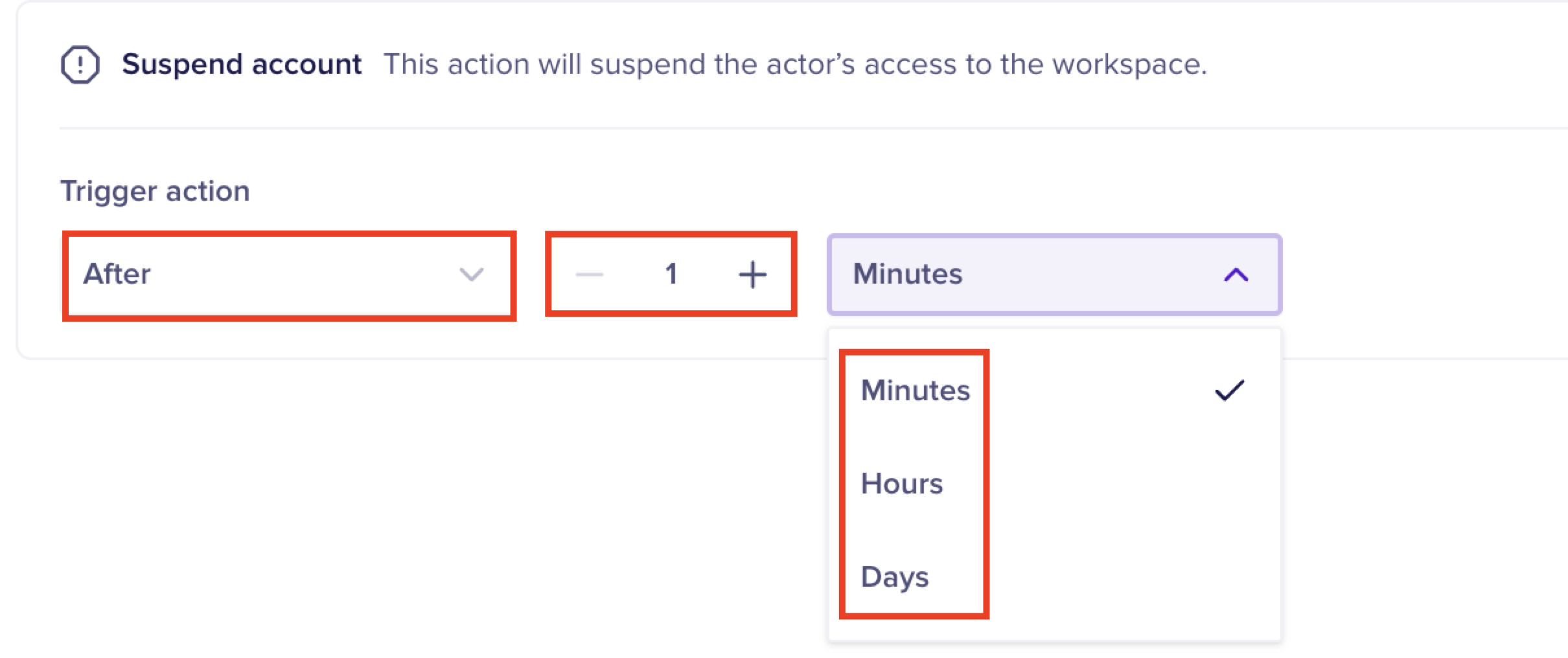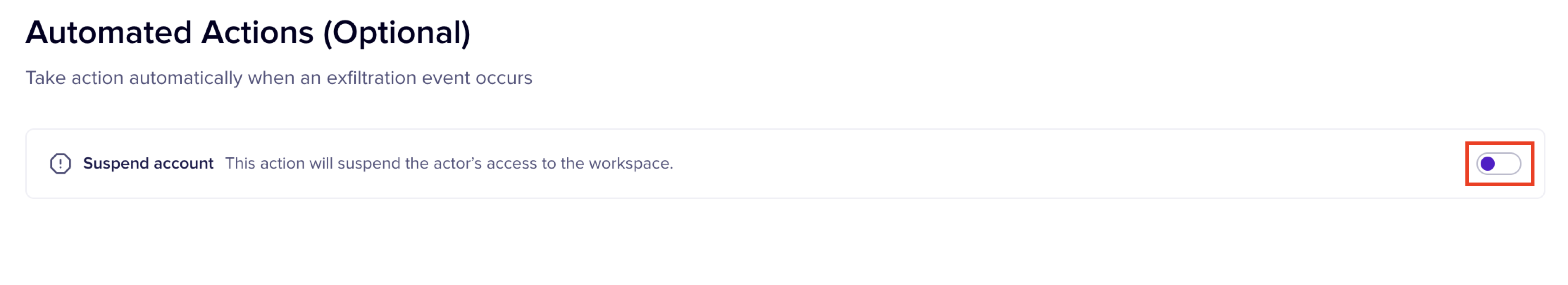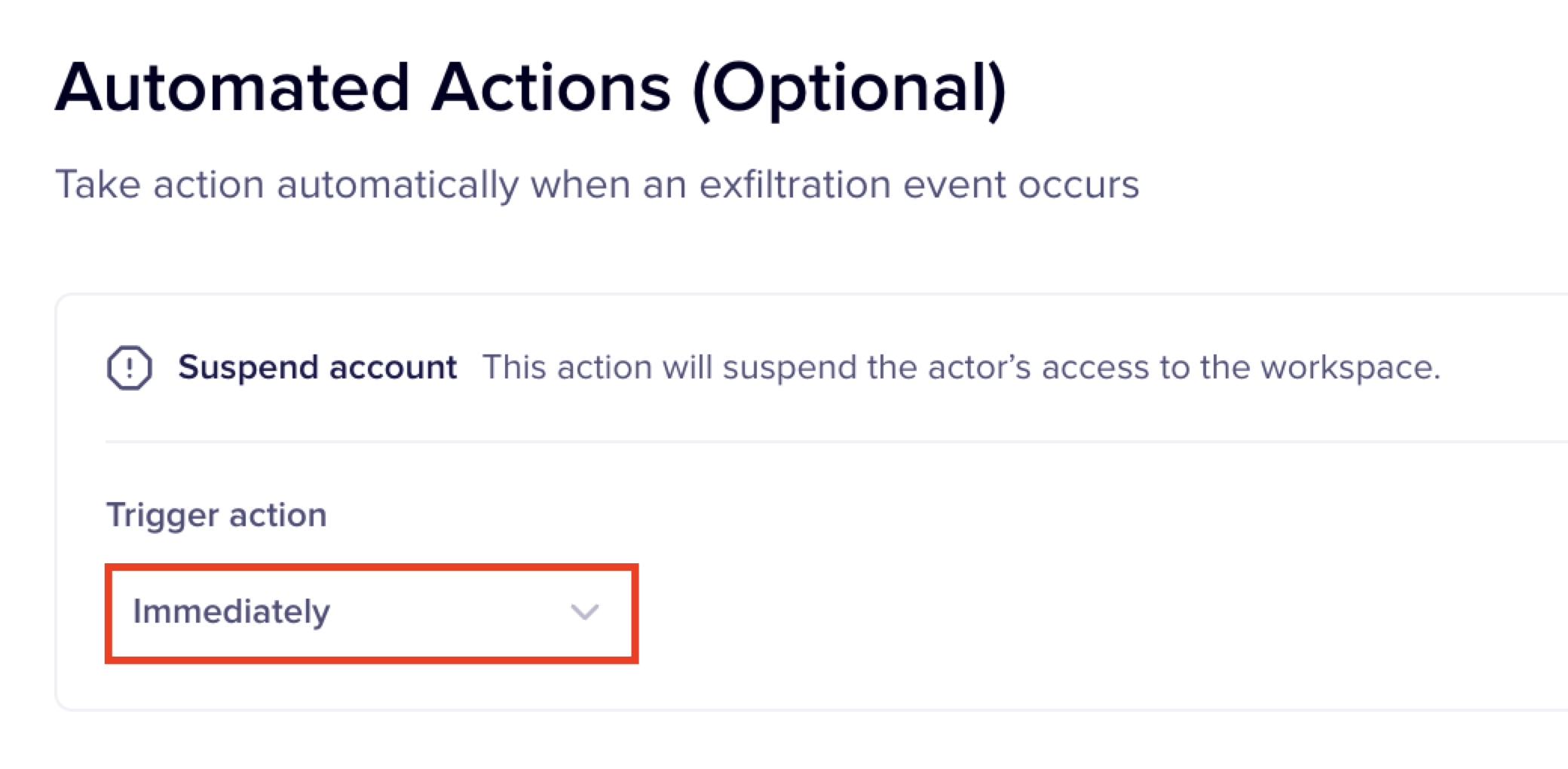 Additionally, you can also configure the timing as to when this automation action must be implemented, after detecting the violation. The configurations are similar to the Suspend Account action.