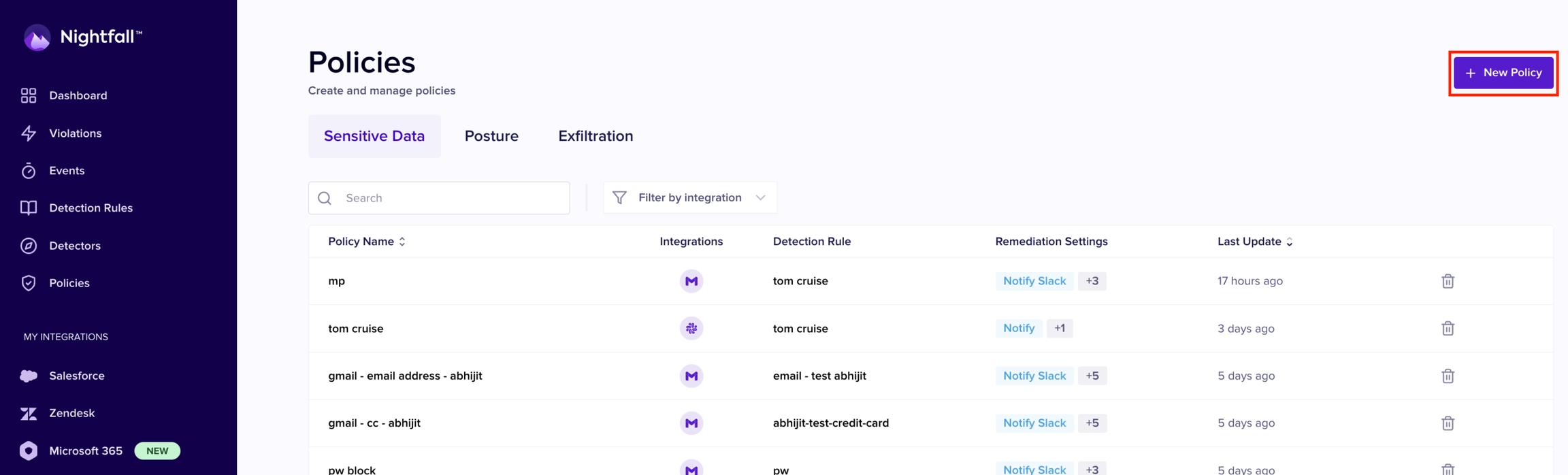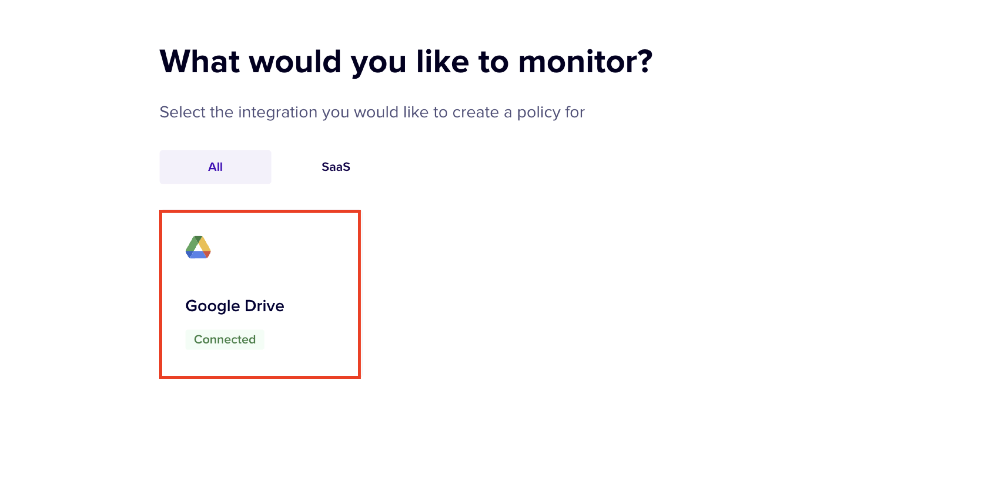In this stage, you select the Integration for which the policy is created. In this case, Google Drive integration must be selected.
