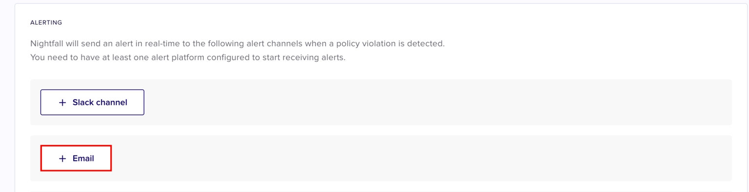Nightfall for Google Drive allows you to configure alerts at the policy level and also at the integration level. Alerts can be sent in Google drive by using the following alert channels.