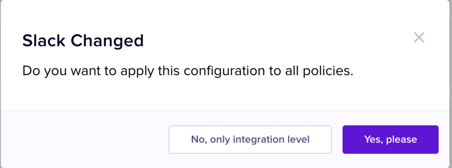This document explains how to configure alerts at the integration level. To learn about how to configure alerts at the policy level, read this document.