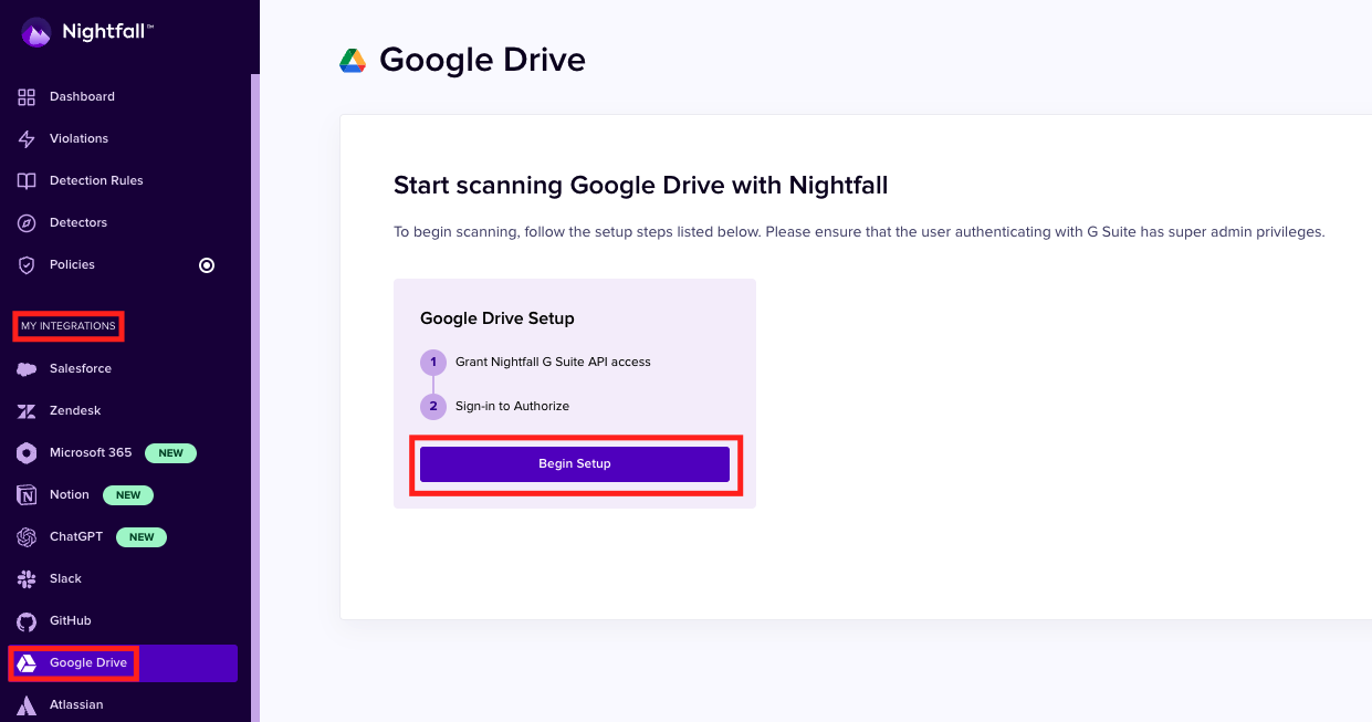 This document explains the steps to install the Nightfall for Google Drive.&#x20;