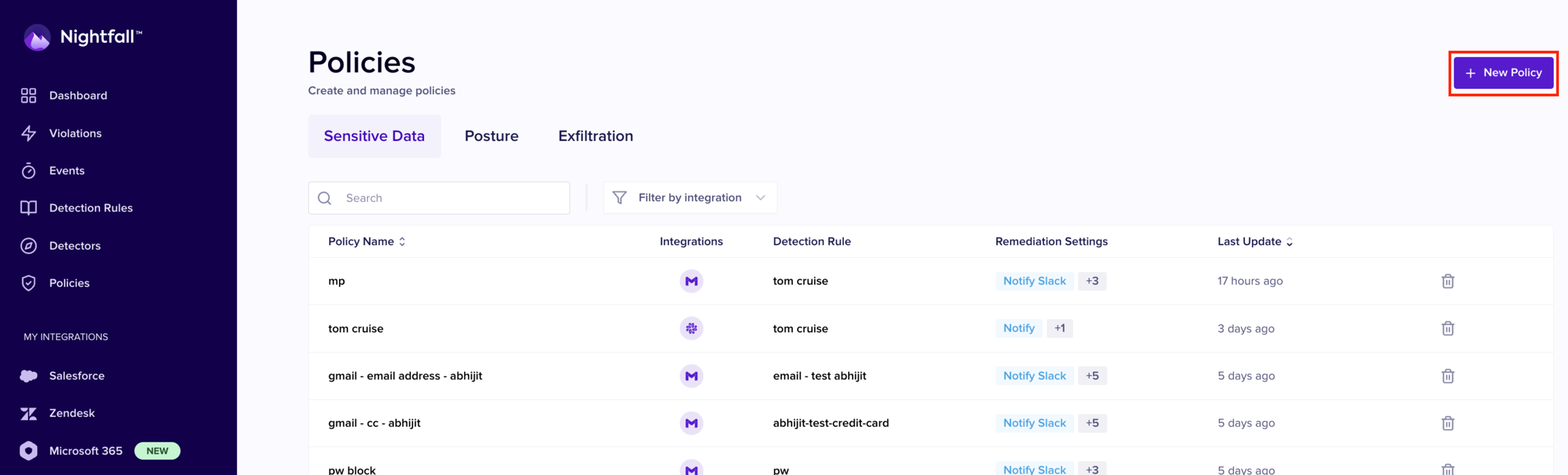 When a policy detects such a possible posture change attempt, you can configure appropriate steps to remediate the user action. Nightfall provides multiple automated remediation measures and notification channels when a policy detects a posture alteration attempt. The remediation actions help you revert the posture change attempt. The notification channels can be used to notify appropriate stakeholders about the posture change attempt detected by Nightfall.