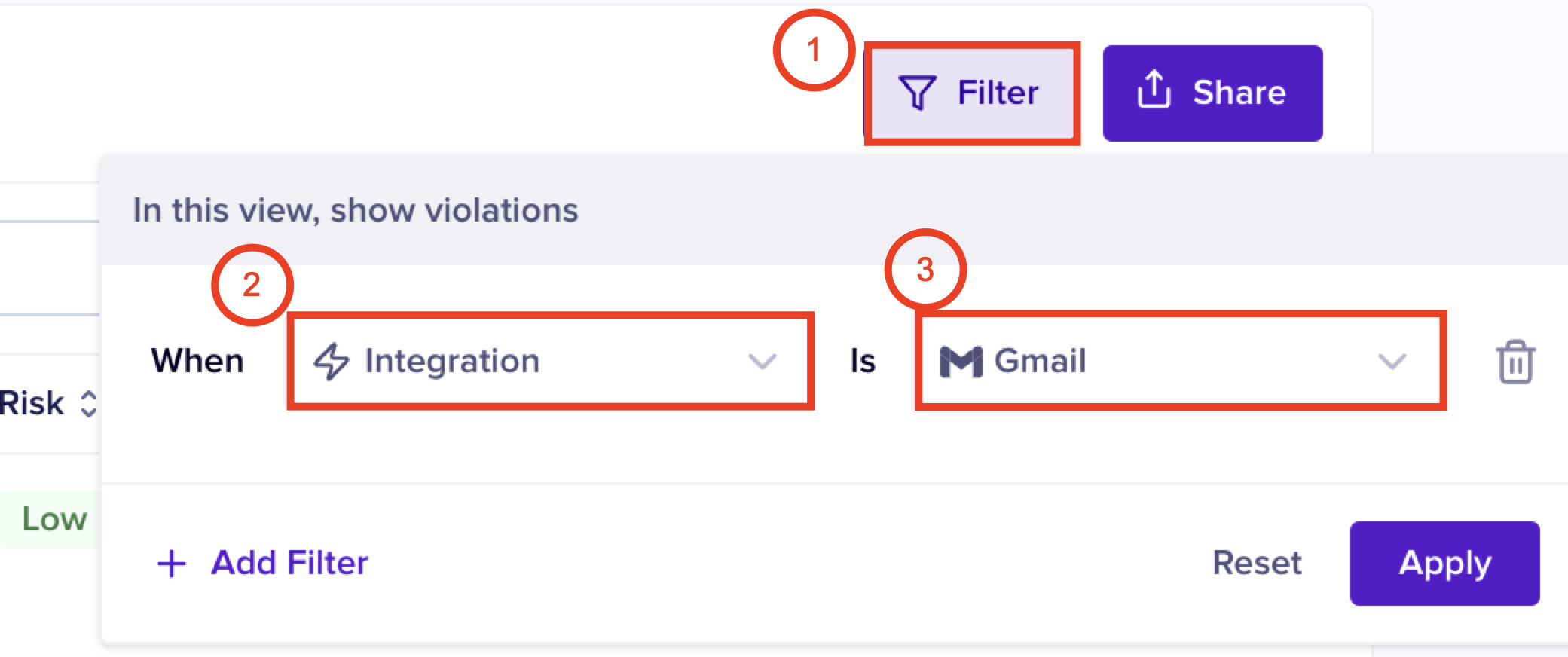 This document explains where you can find Events on Gmail policy violations and what actions can be taken.