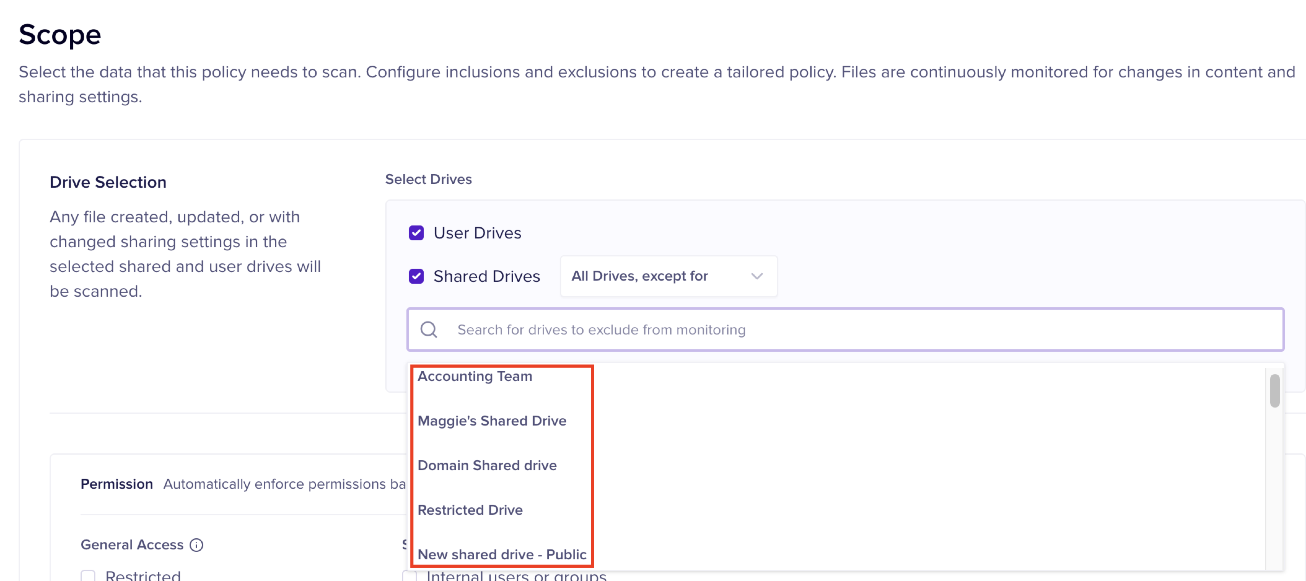 If you select the All Drives option, all the Shared drives in your Google domains are selected for monitoring.