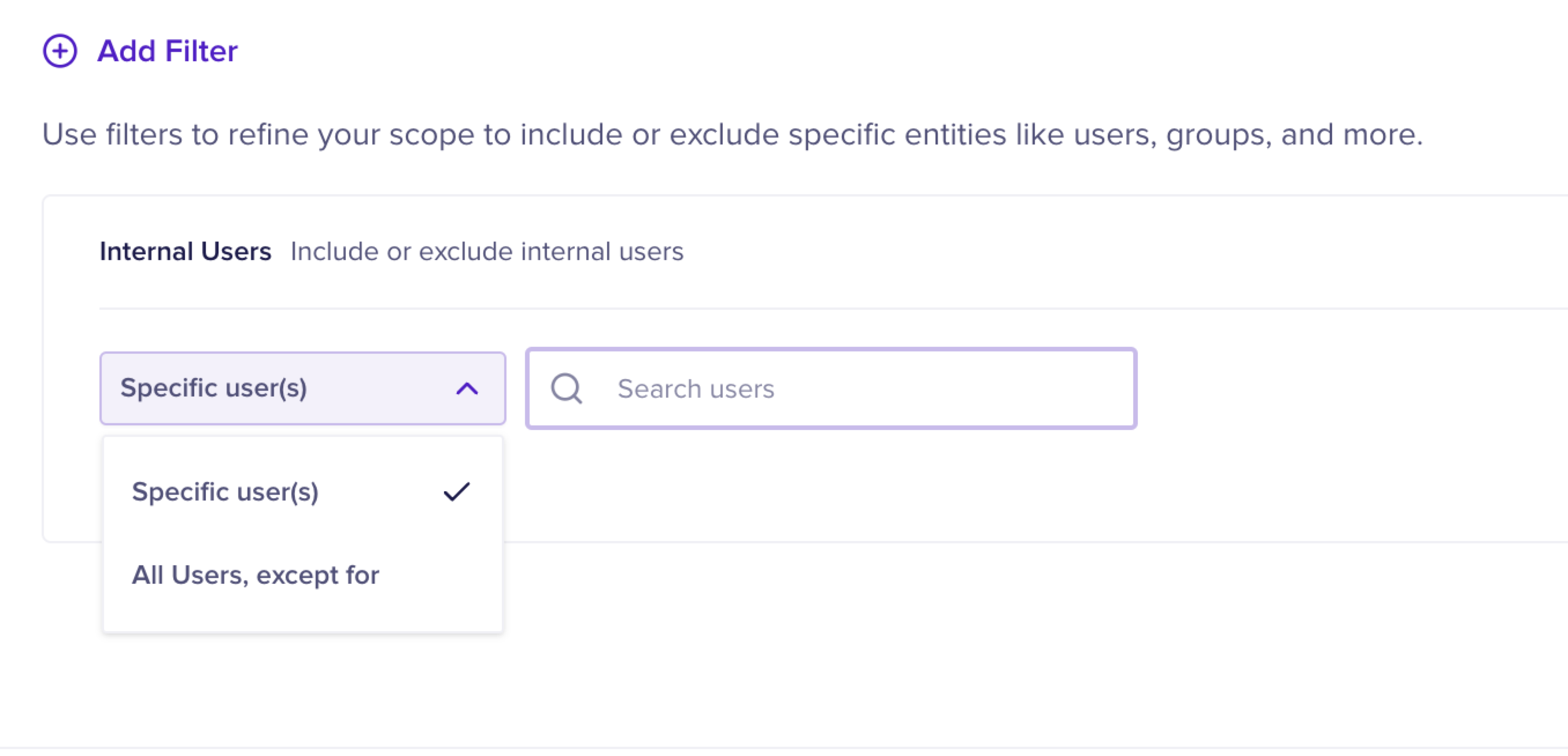 The filters section provides you the flexibility to include and exclude users at a granular level.