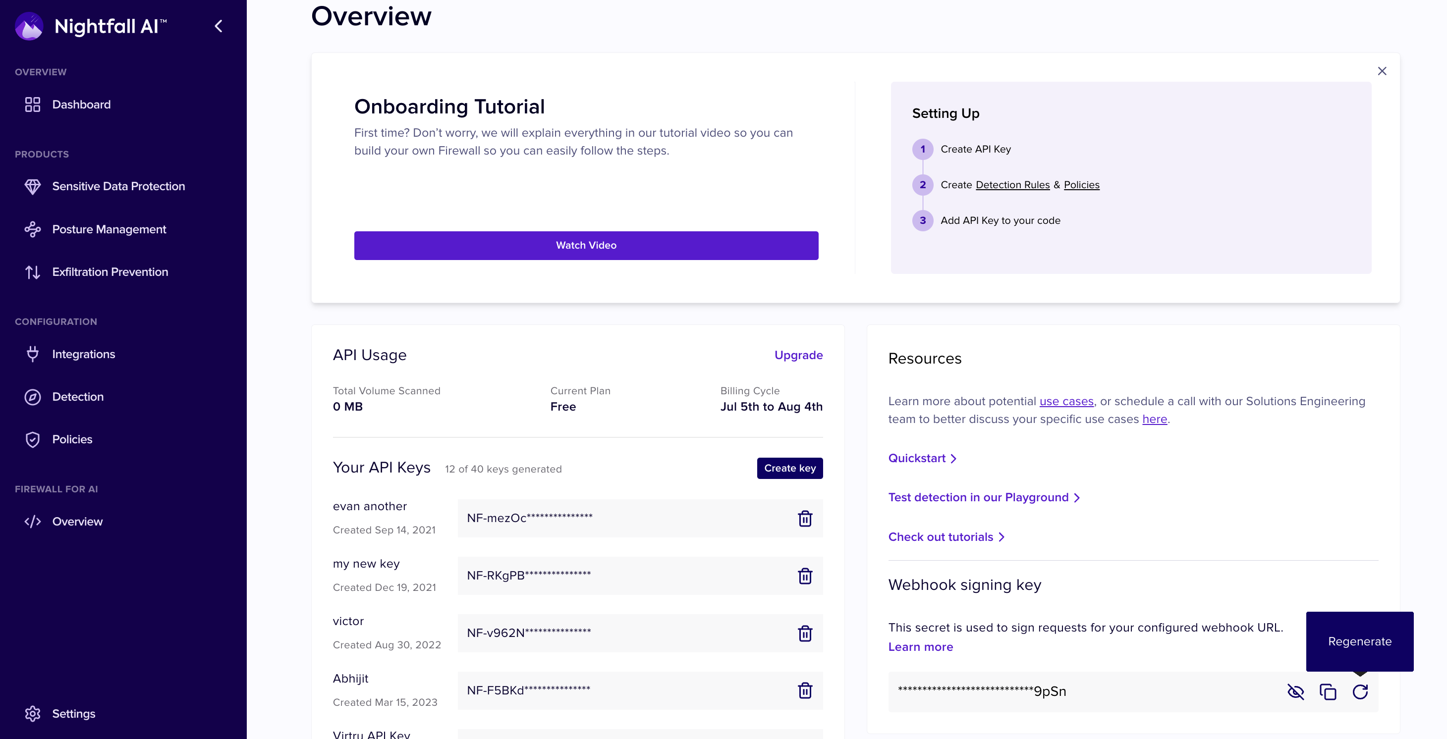 Users with the System administrator role have access to the whole Nightfall application. There is no restricted resource from the system administrator user. Users with System adminstrator roles can create API keys for Firewall for AI. They can also add or remove users from the Nightfall app and edit a user's current role. System administrators also have full access to the Nightfall settings configurations.&#x20;