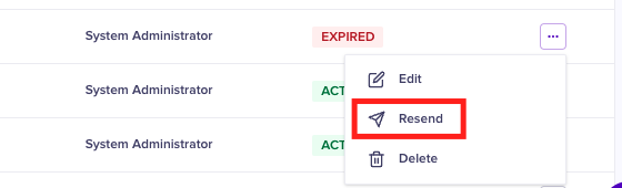 Admins can resend the invite email to Expired users by clicking the ellipsis menu.&#x20;