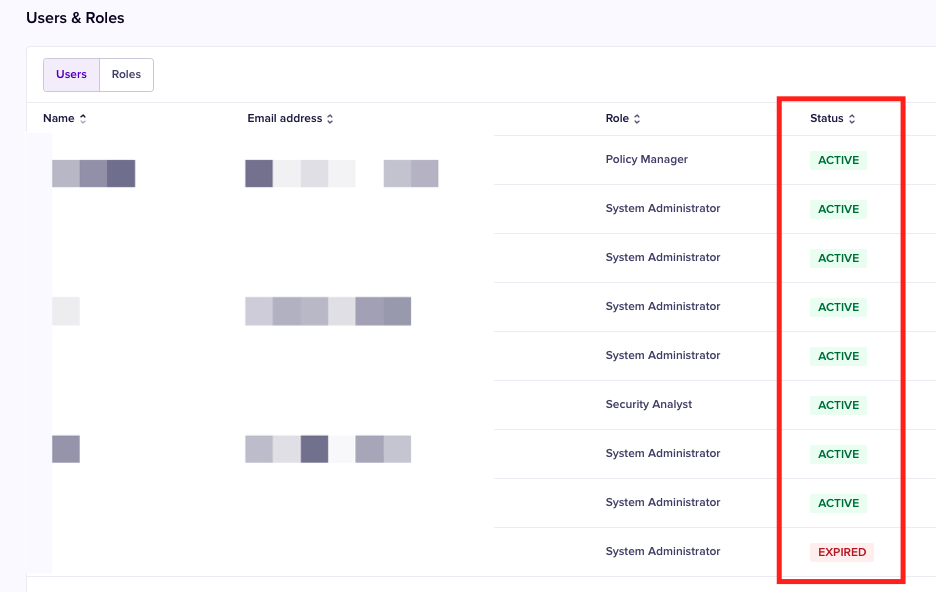 Users who successfully activate their account are displayed as active users and their status is displayed as **Active** under the Status column. A user who does not accept the invite is displayed as **Expired** under the Status column.&#x20;