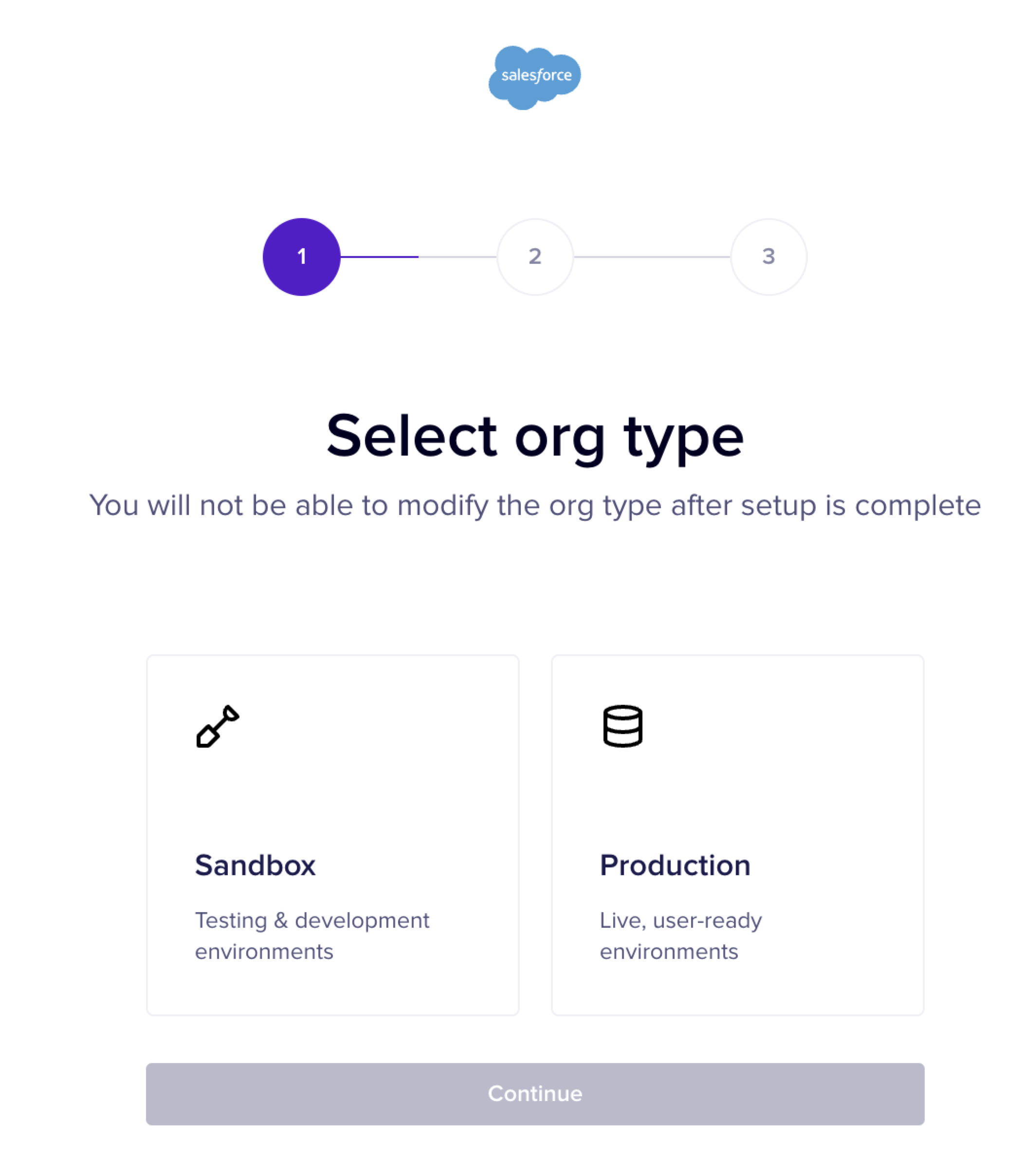Select either Production or Sandbox options. You must select the option in which you wish to upgrade the Nightfall for Salesforce DLP.