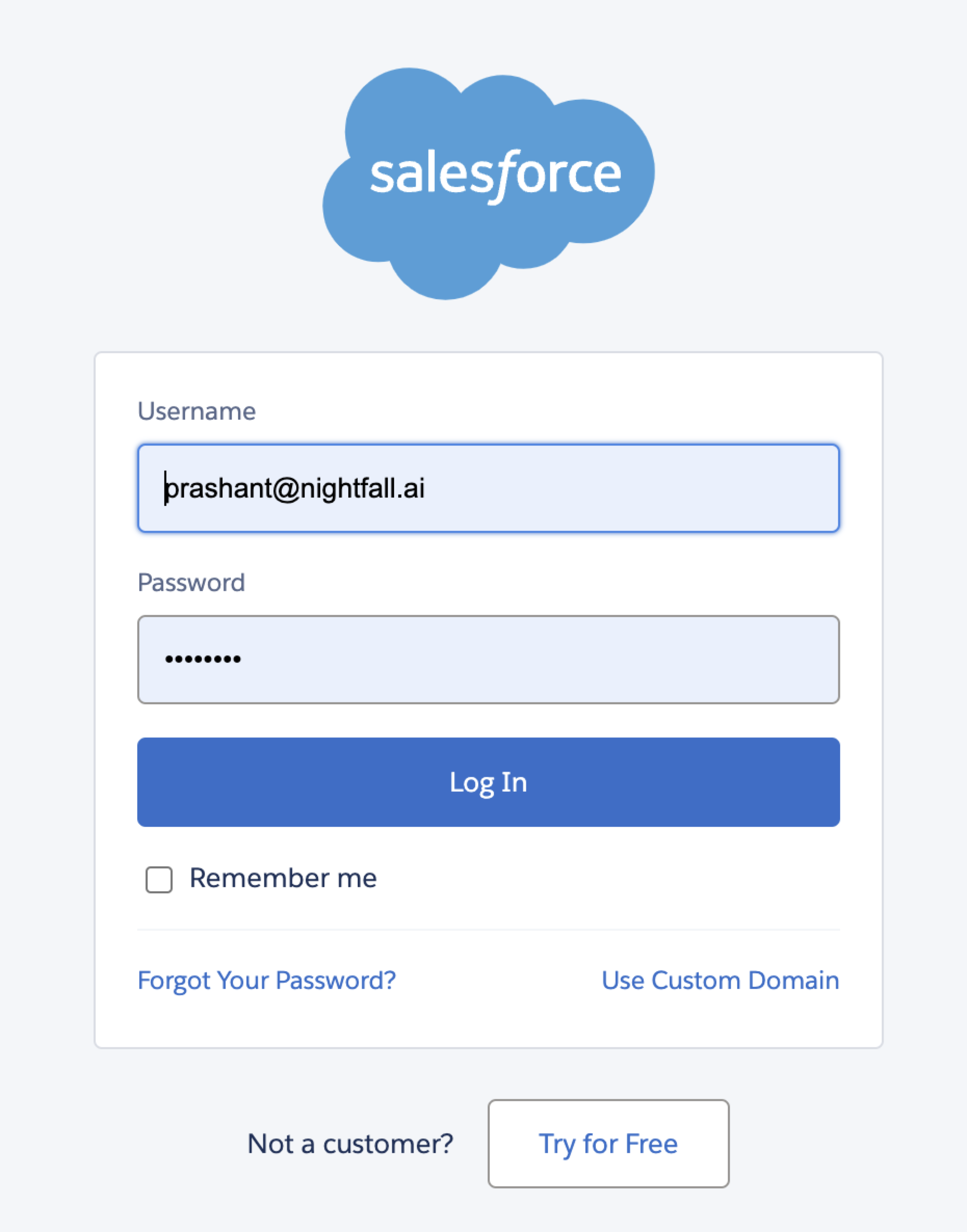 Log in to the selected Salesforce account you selected in step 7.