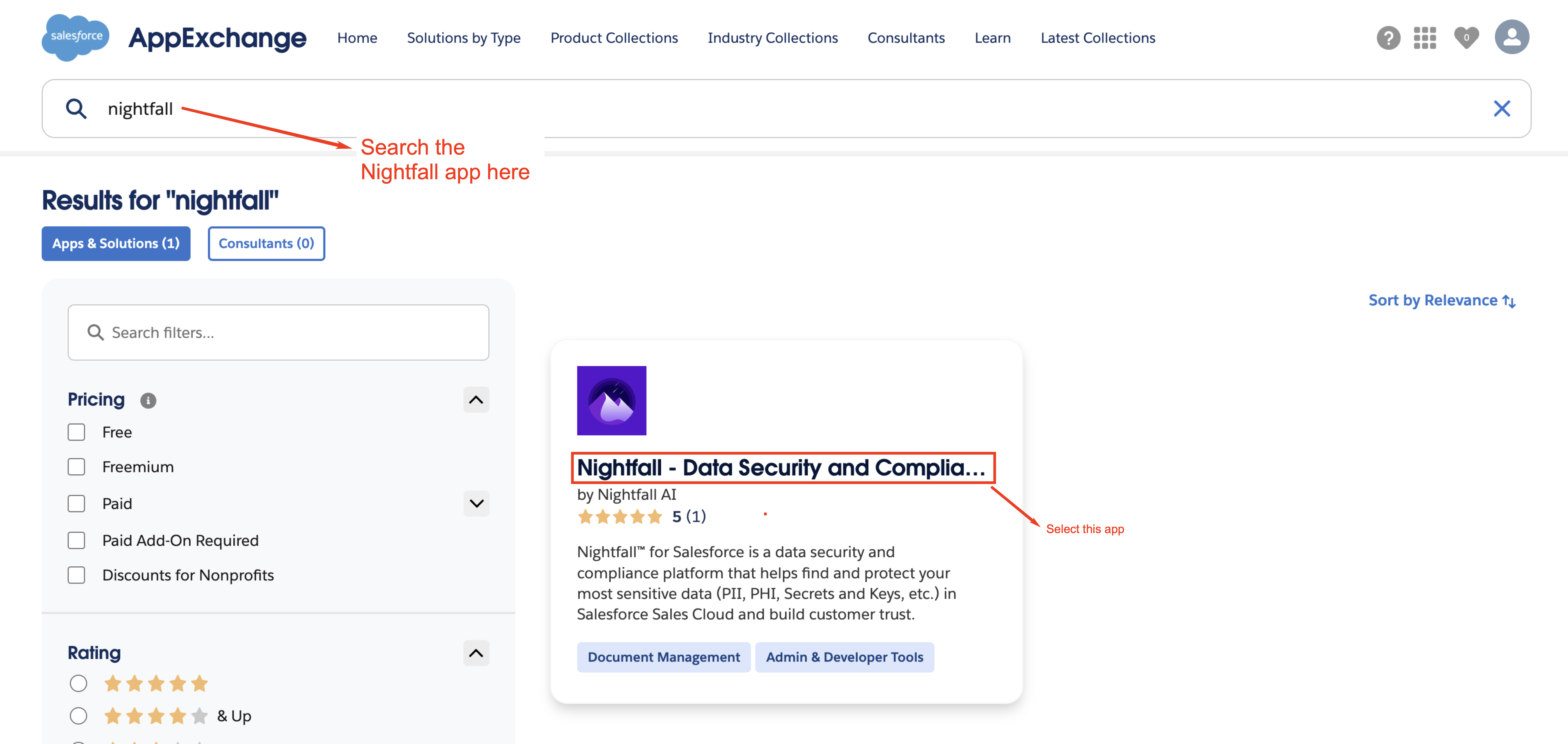 Use the search bar to find the Nightfall app.